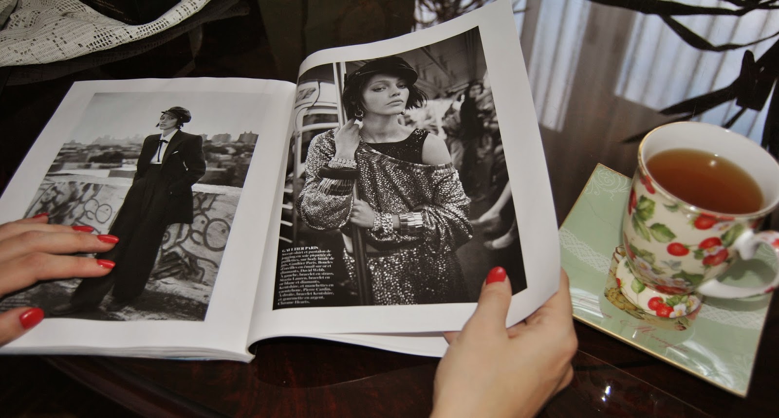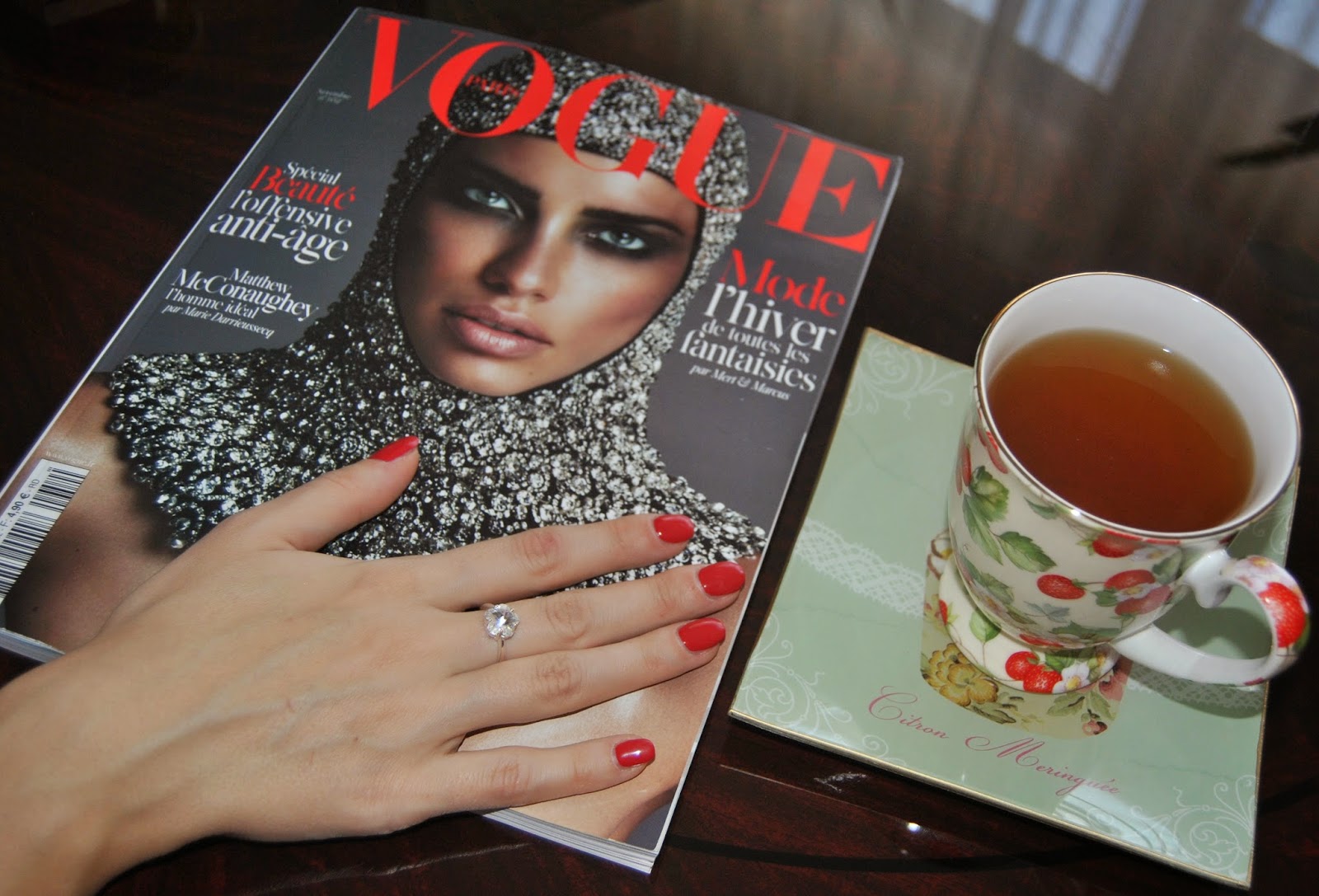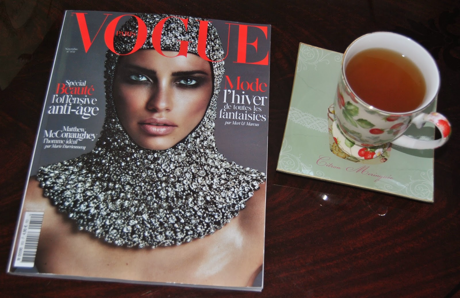 Dragi moji, na početku moram da vam se izvinim što nisam objavila post duže od 15-ak dana. Obaveze su me pritisle, između ostalog i kratak, iznenadni put u prelepi Pariz. Ovih dana očekujem slike odatle i prosto jedva čekam da vam pokažem bar delić atmosfere iz romantičnog i kišnog Pariza. U ovom postu, možete videti par inspirativnih stvarčica sa ovog putovanja, kao što su katalozi-časopisi poznatih, luksuznih i prostranih robnih kuća Printemps i Galeries Lafayette, novo izdanje francuskog Vogue časopisa sa prelepom Adrianom Limom na naslovnici, moje polaroid sličice ispred poznatog muzeja Luvr, suptilni francuski parfem Repetto, crveni ruž Givenchy (rouge interdit br. 12), slatku tašnicu sa leopard printom Sinequanone, Ladurée kesicu (njihove ukusne makarone ćete videti u narednom postu), divne staklene tacne sa motivima Pariza i šolju čaja. Uz ove stvarčice, provodim savršeno popodne. Kako vi provodite svoje slobodno vreme kod kuće, kada je hladno i oblačno kao danas?