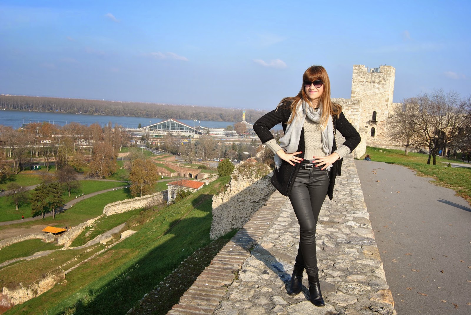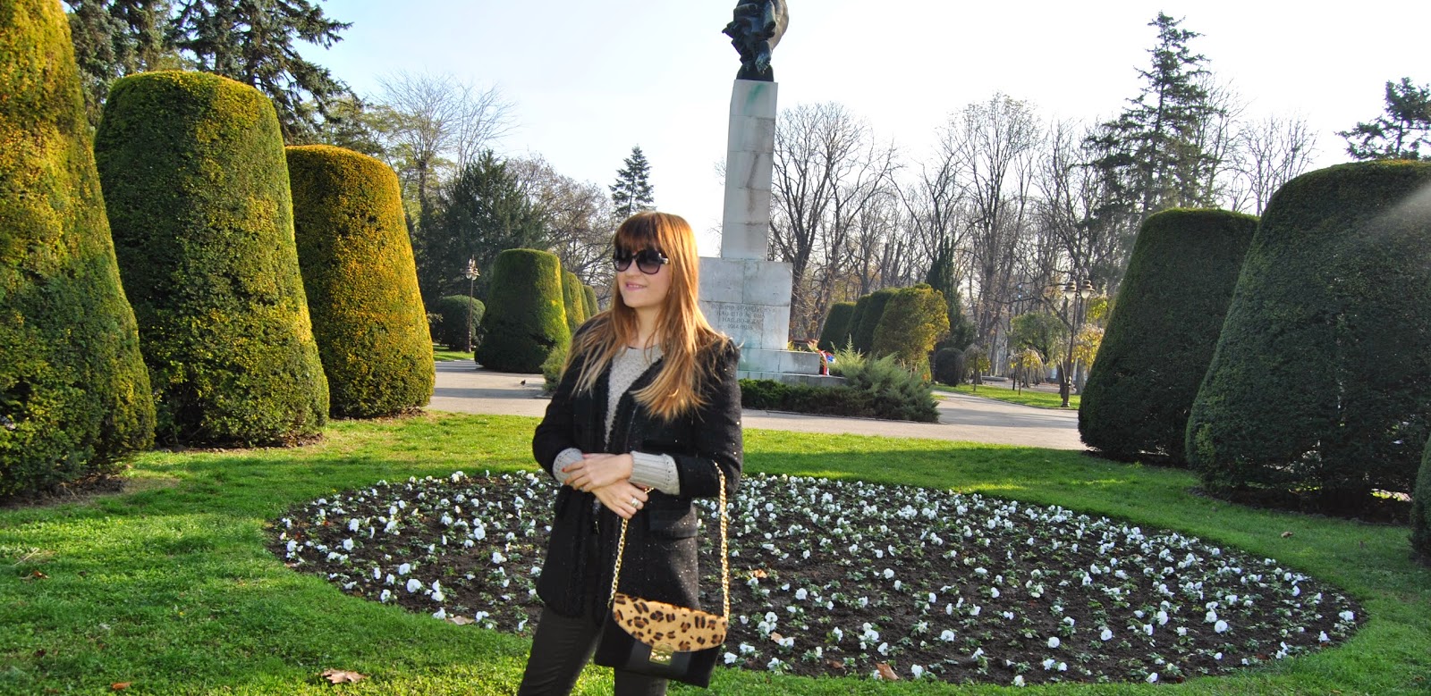 Ćao dragi moji! Danas je bilo baš hladno, ali sunčano, tako da sam odlučila da prošetam divnim Kalemegdanom. Možete me videti u crnom outfit-u sa malo sive i leopard printa. Iskombinovala sam uske pantalone, koje daju efekat kao da su od kože sa kratkim vunenim džemperom i kaputom protkanim lameom. Kratke crne čizmice čine se idealnim za ovakvu formu uskih pantalona i naravno tu su i modni dodaci, bez kojih je svaki outfit nedovršen. Izabrala sam veliki, vuneni šal u sofisticiranoj sivoj sa srebrnim ivicama i slatku kožnu tašnu sa leopard printom i dugačkim lancem. Da li vam se sviđaju gradski outfit-i, poput ovog?