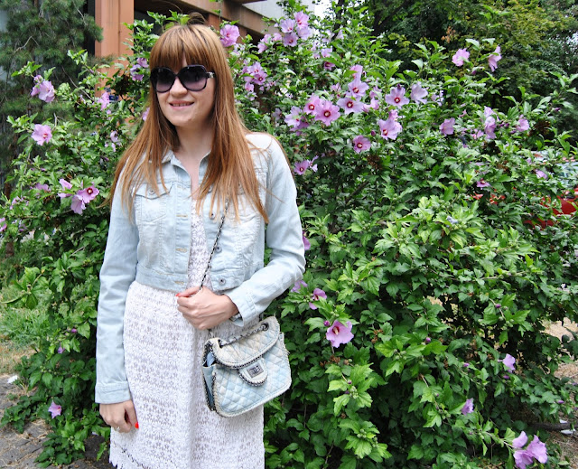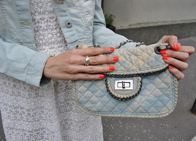 First of all, here are a lot of chic shorts and trendy tops perfect to make the top choice for summer. Also, I show you one of my denim looks with short denim jacket, white dress, comfy loafers and denim purse in ”Chanel” style. I like mix of short jackets and dresses. It looks so chic!