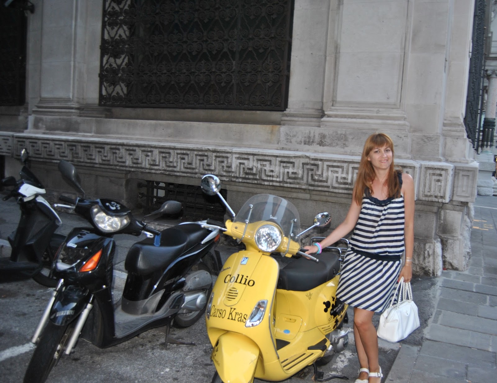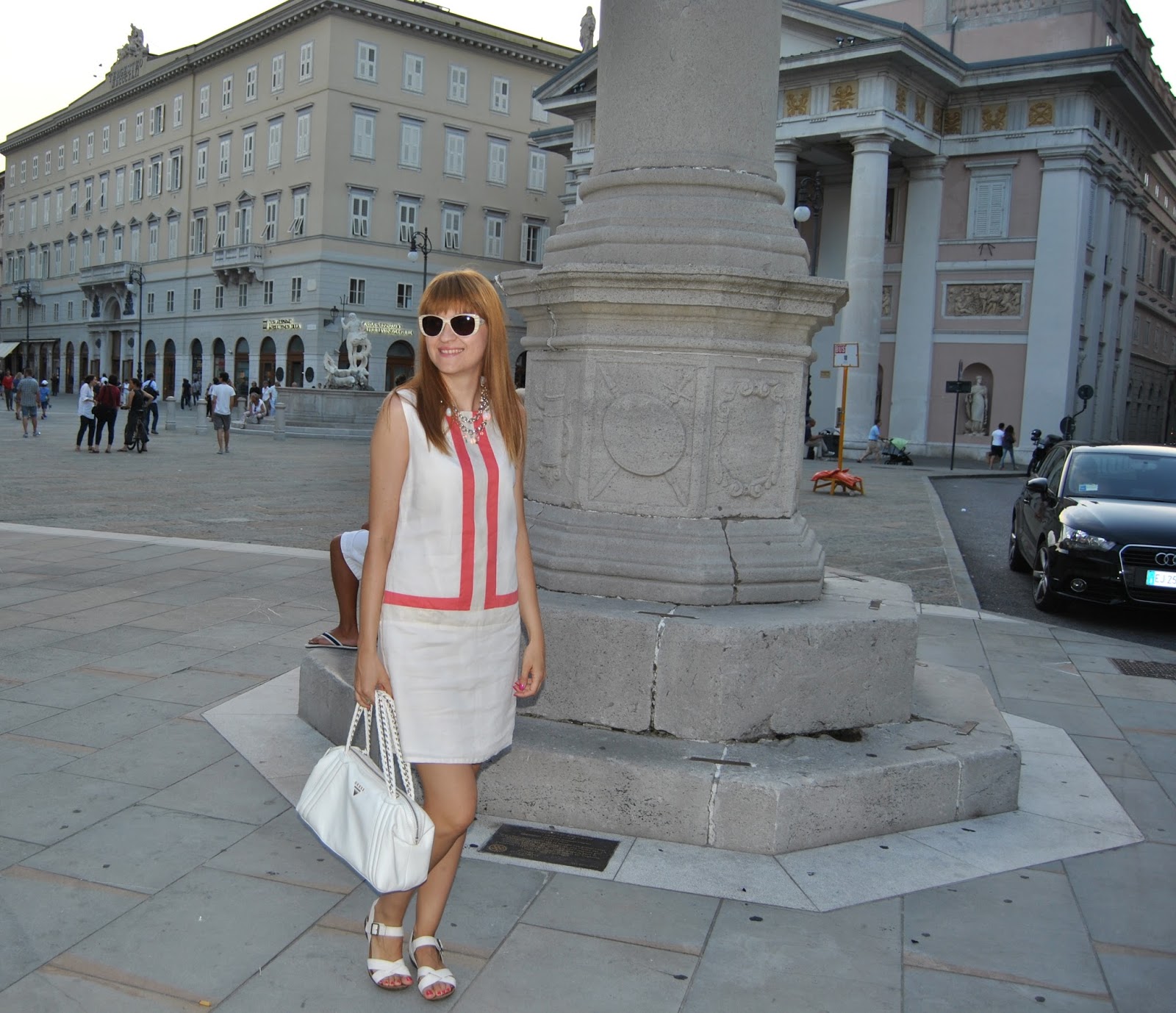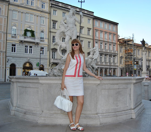 This is the second post from my Italian vacation. You can see two pleasant evenings in Trieste for which I’ve worn casual cute dresses. First is linen in light beige, golden and orange tones and second is with navy stripes. I like these comfy, but also chic pieces for summer, like you have already noticed 🙂 Of course, accessories are necessary to spice and complete every outfit. Statement necklace with crystals or attractive bracelets, good sunnies, leather bag and sandals and I am ready to research every corner of this charming city 🙂 I have enjoyed in walking, and also mmmm in famous Italian food, such as yummy pizzas and the most delicious gelato (ice cream) in the world. Italian style can’t be completed without refreshing and popular Aperol Spritz and tasty mini panini (sandwiches), olives, strong cappuccino…