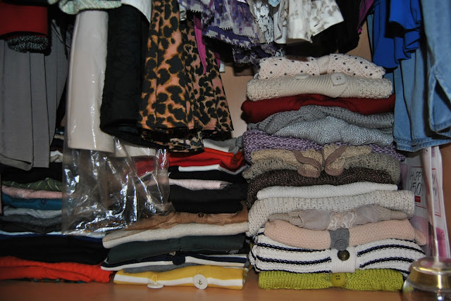* Separation of summer and winter clothes. In my case, that means rotation in the closet. So, the tiny summer dresses, tops, skirts etc. put on the upper, distant level and winter woollen/cashmere and similar items on the lower, closer level.