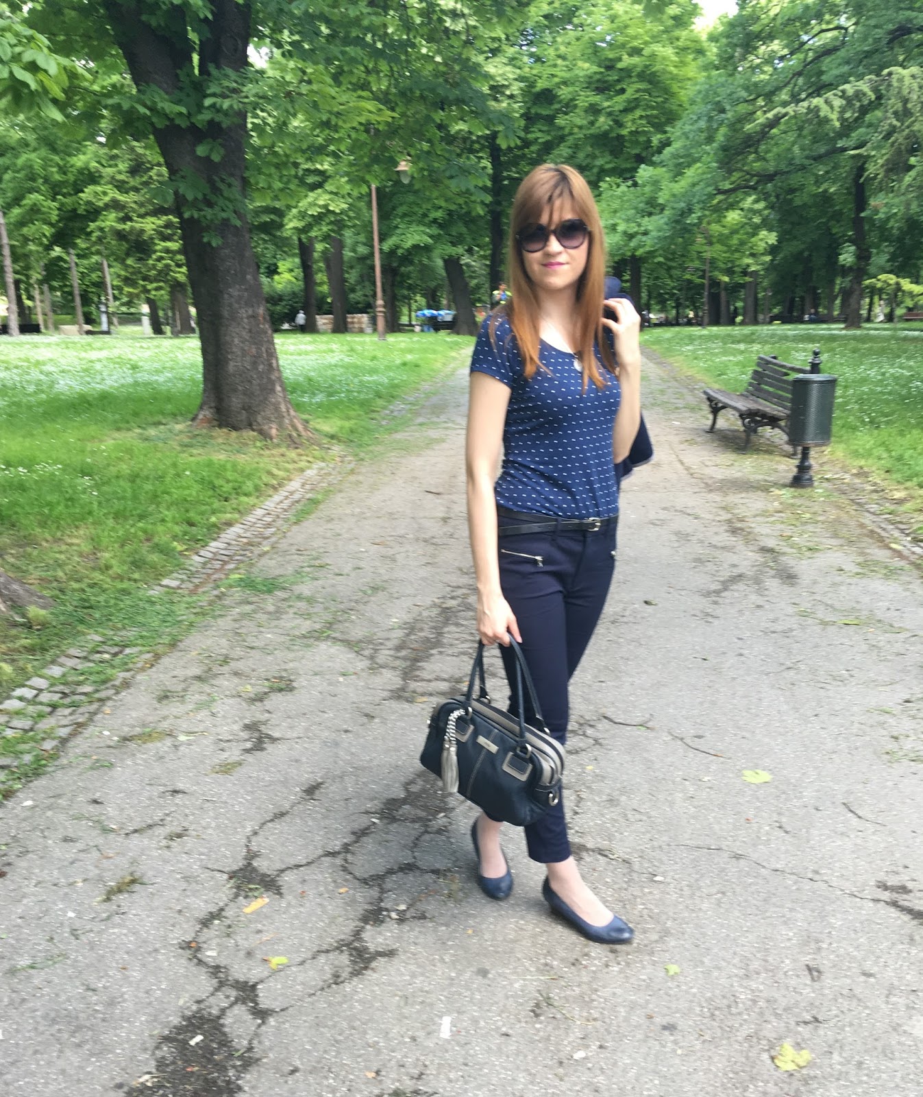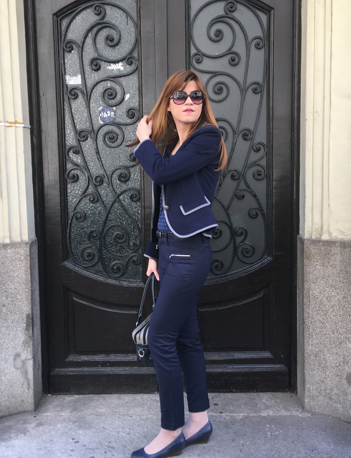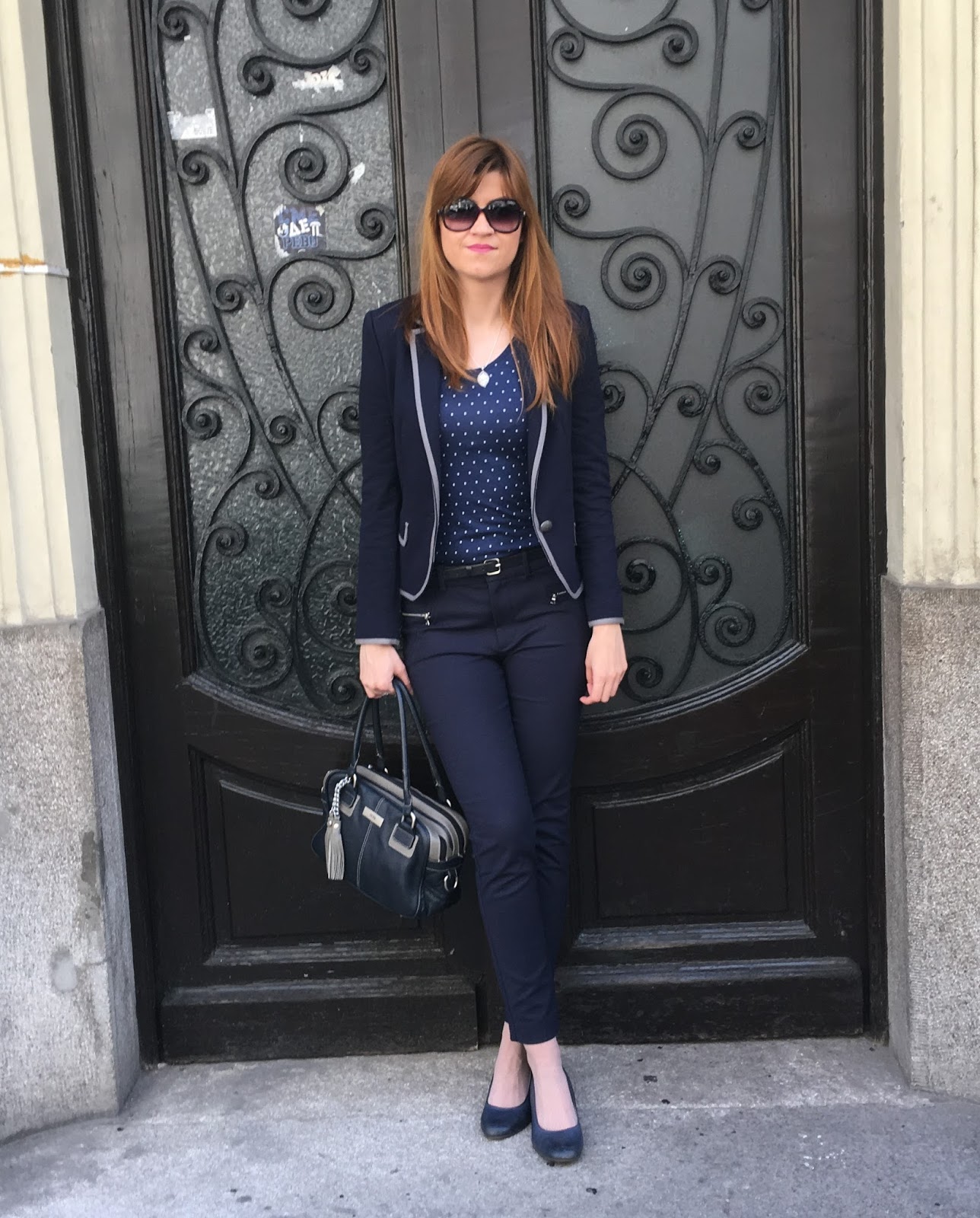 Odlučila sam se za tipičnu poslovnu eleganciju u najpopularnijoj biznis boji, teget. Međutim, outfit nije strogo poslovni jer je blejzer izrađen od pamučnog materijala, a i pantalone dužine 7/8 su sa elastinom, tako da sam se osećala veoma prijatno u ovoj udobnoj, a ujedno i elegantnoj kombinaciji. Začinila sam outfit sa slatkom tufnastom majicom i detaljima poput srebrne ogrlice, velikih naočara sa plavičastim staklima i kožne torbe koja je slučajno u identičnom miksu teger-sive kao i sako, što je po mom mišljenju ispalo savršeno. Pokušala sam da vam prikažem bezvremensku eleganciju za moderne poslovne dame. Nadam se da vam se dopada. Da li volite da nosite biznis komade i kako ih kombinujete?