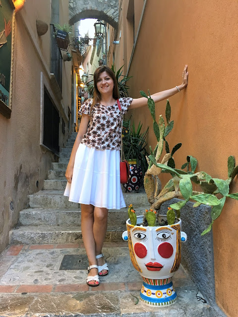 Ja sam se prosto oduševila Taorminom, koja poseduje, po mom skromnom mišljenju, savršen arhitektonski stil, puno raznoraznih detalja i živopisnih boja. Prepuna je tropskog voća, začina i raznih egzotičnih vrsta kaktusa sa zrelim plodovima. Moram da napomenem i da sam se uverila da je na Siciliji definitivno najukusnija hrana u celoj Italiji, kako u pogledu slanih đakonija, tako i u pogledu slatkiša. Ako vas zanima preporuka šta da probate, slobodno me pitajte hehehe.