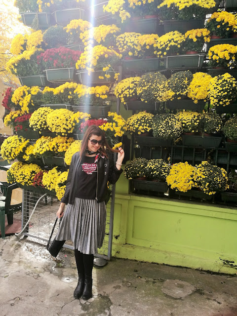In this post, you can see my version of rock’n’roll inspired look with leather jacket, bandana scarf, t-shirt with plaid print of heart, ankle boots, dark tights… Also, the main role is on this feminine silver pleated skirt. Hope it is a successful mix of rock grunge and feminine pieces.