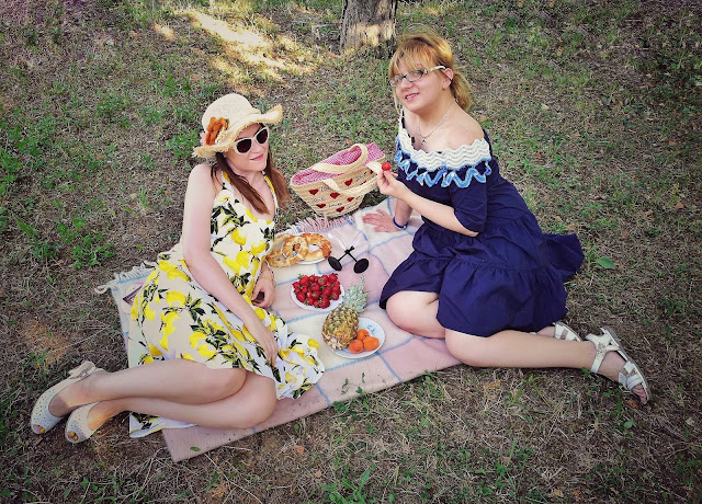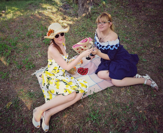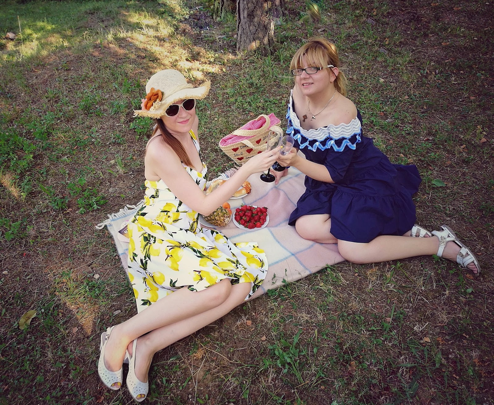Glavna ideja bila nam je da stvorimo retro piknik atmosferu noseći ženstvene haljine midi dužine, poput dama iz 50-ih godina prošlog veka. Nadam se da smo u tome i uspele 🙂