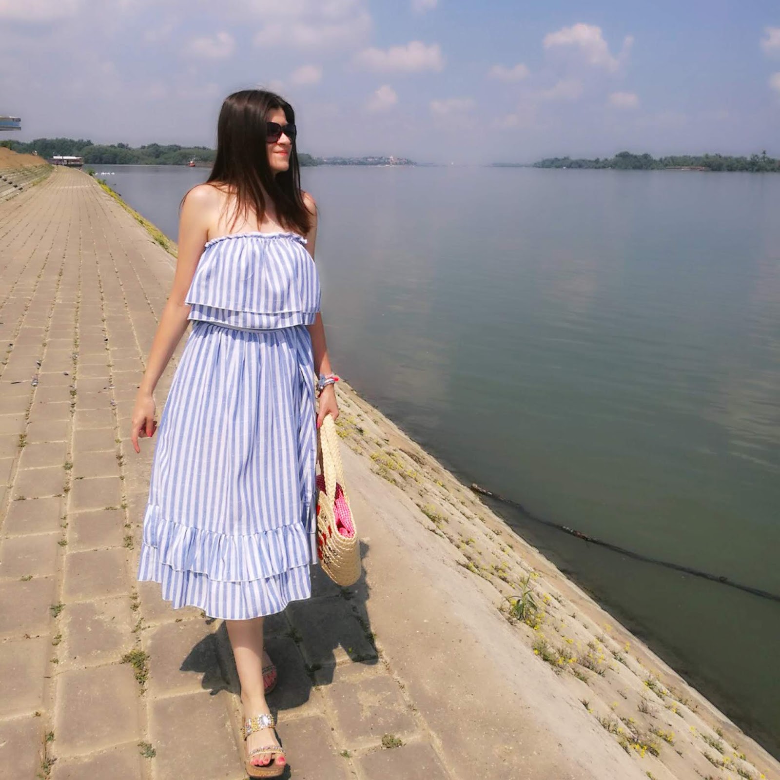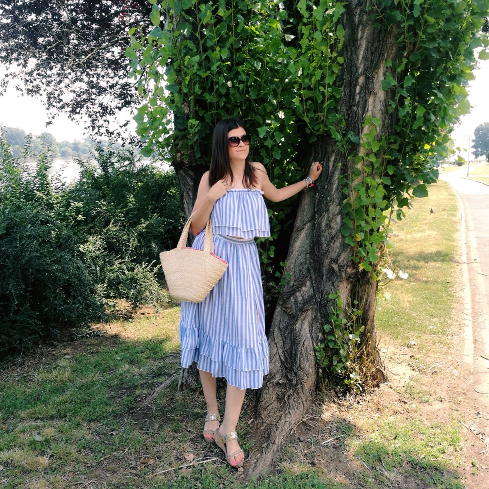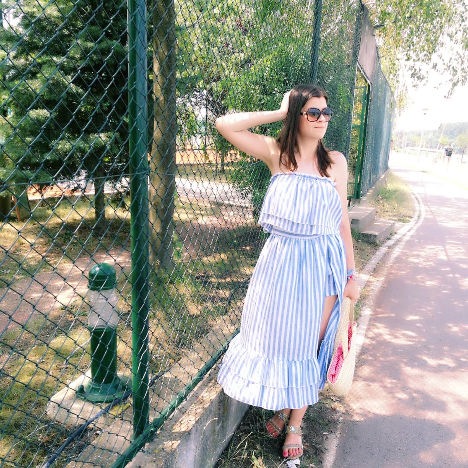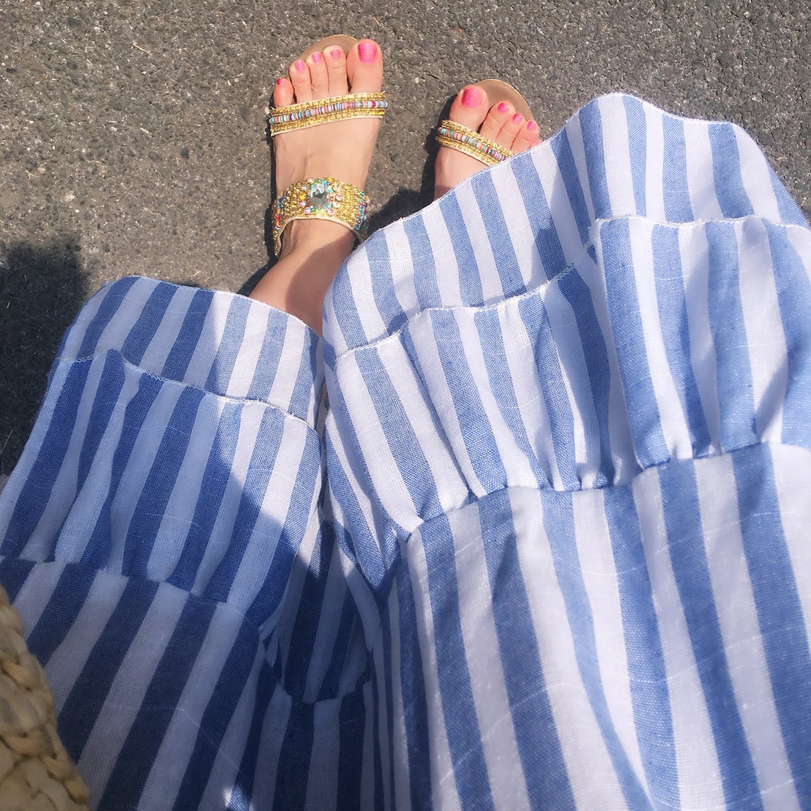 I was pleasantly surprised when I found this super chic two piece which includes cotton striped bandeau top and ruffle skirt (with practical shorts inside), so perfect for these hot summer days in the city or for the summer vacation time.