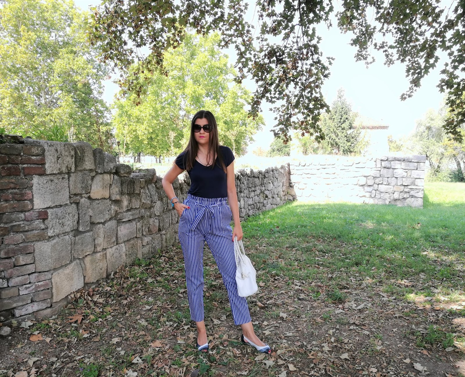 Pants: / T-Shirt: Esprit / Bag: Guess / Sandals: Heyraud / Sunnies: Armani / Jewelry: vintage
