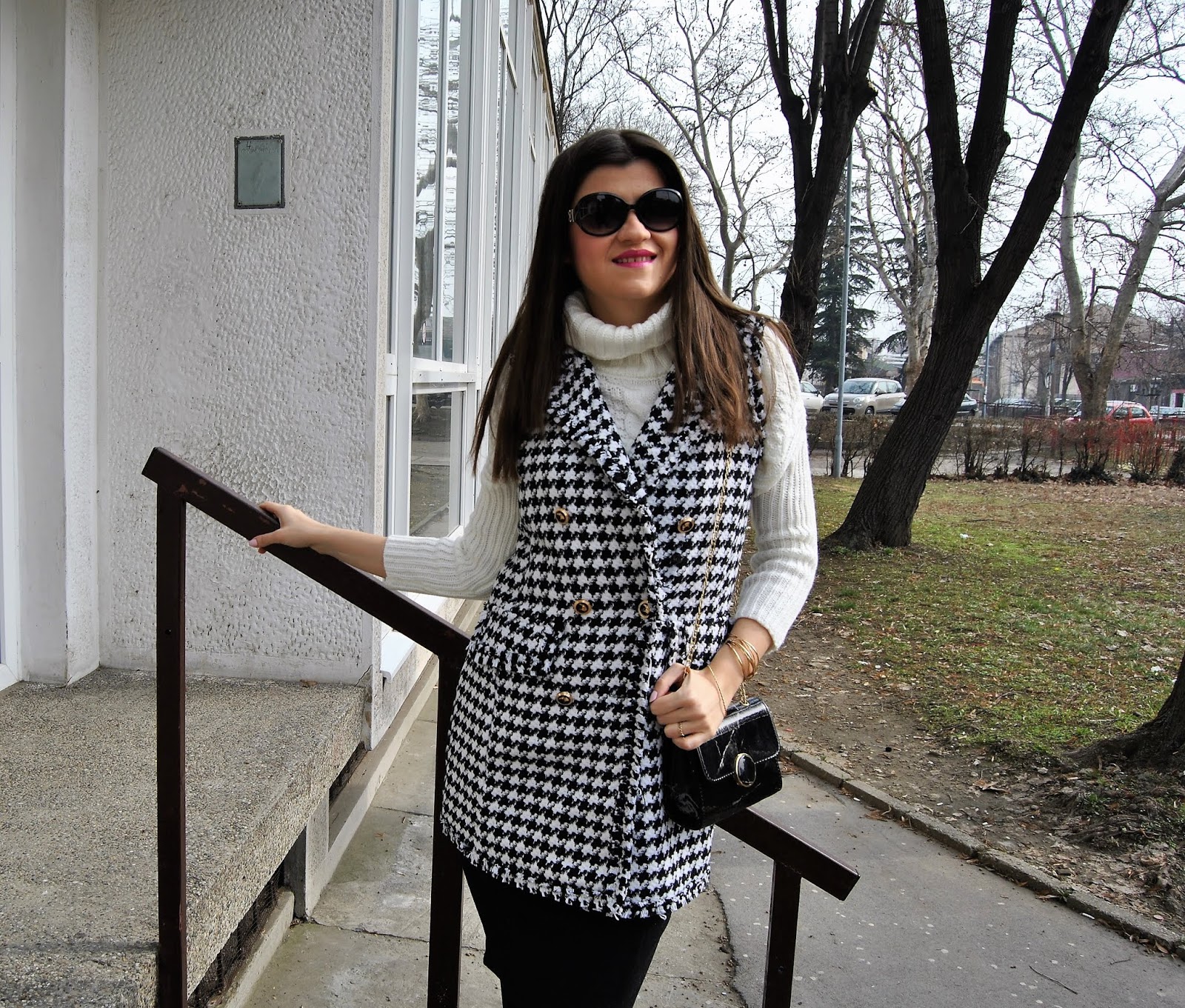 It’s the perfect print to emphasize your own style and classy impression. It can be in the black & white combo of colors or on some other eye-catchy tones. If you’re wondering how to wear a houndstooth print this winter, I’ll show you one of the ideas.